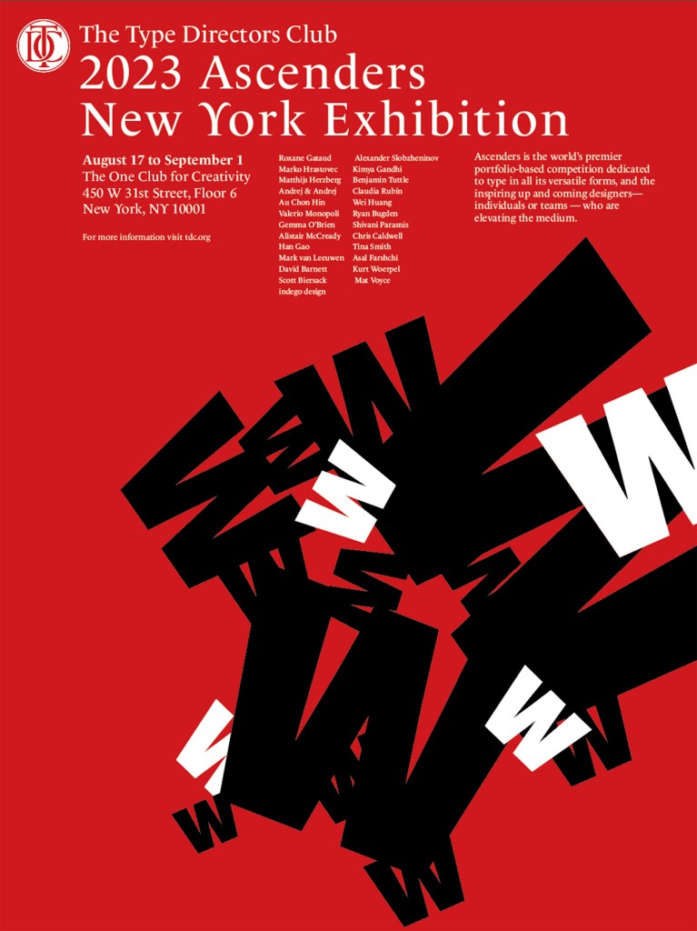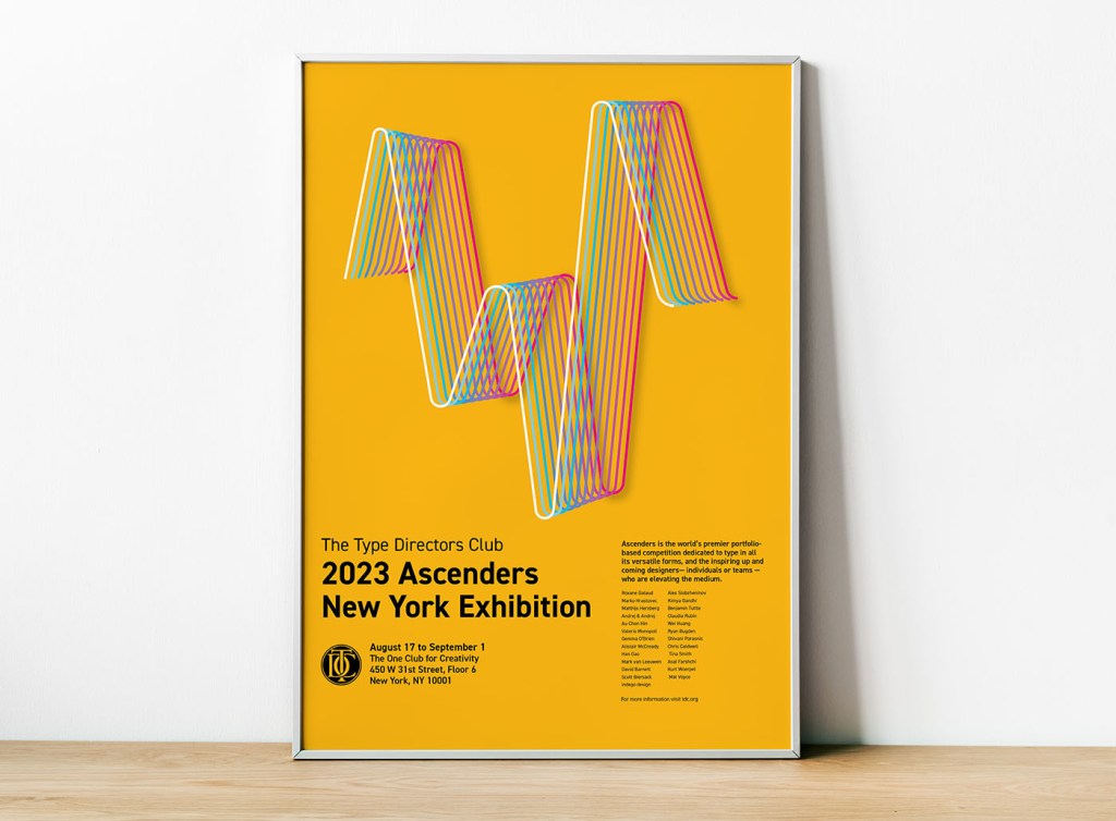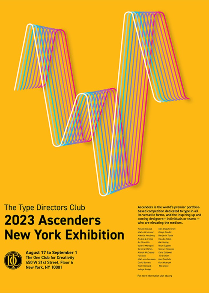 The design featured is a poster design for the 2023 ascenders exhibition in New York for the Type Directors Club. The letter feature in the poster is W, and was created on the concept of wavelengths, and how people exist on different wavelengths. Along with the use of a bright and bold colour palette for a vibrant and fun poster to catch the eye of people who may just be passing by. I am currently thinking of beginning a drop cap series of these layered, three-dimensional letters, to continue exploring letterforms and different colour combinations.